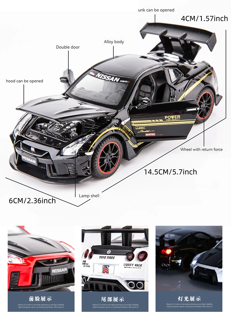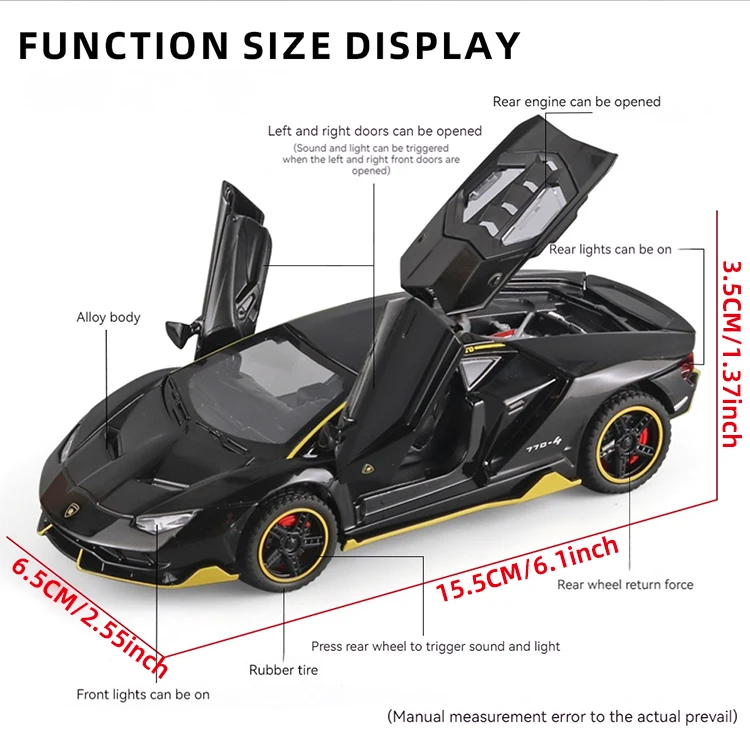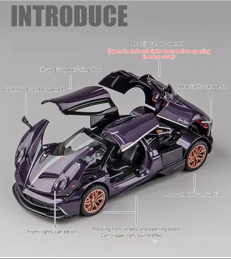 1:32 Toy Cars Lambo Pagani Huayra Metal Model Car with Light and Sound Pull Back Toy Car for Boys Age 3 + Year Old